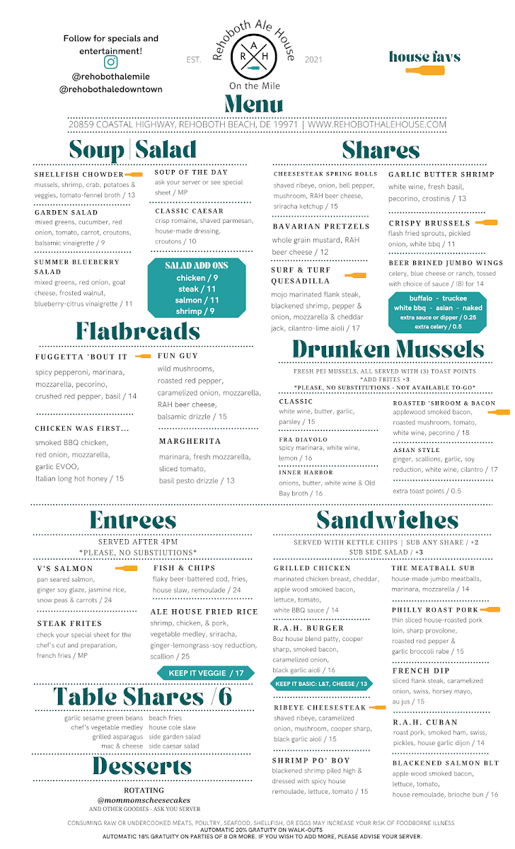 Welcome to Rehoboth Ale House On The Mile, where coastal charm meets culinary excellence in Rehoboth Beach, DE. This vibrant establishment offers a diverse menu that caters to every palate, ideal for a casual yet satisfying dining experience.